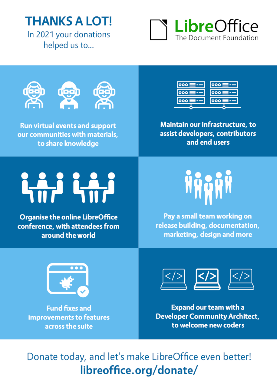 Impressum (Rechtliche Hinweise) | Datenschutzerklärung (Datenschutz-Bestimmungen) | Statutes (non-binding English translation) - Satzung (binding German version) | Copyright information: Unless otherwise specified, all text and images on this website are licensed under the Creative Commons Attribution-Share Alike 3.0 License. This does not include the source code of LibreOffice, which is licensed under the Mozilla Public License v2.0. “LibreOffice” and “The Document Foundation” are registered trademarks of their corresponding registered owners or are in actual use as trademarks in one or more countries. Their respective logos and icons are also subject to international copyright laws. Use thereof is explained in our trademark policy. LibreOffice was based on OpenOffice.org.