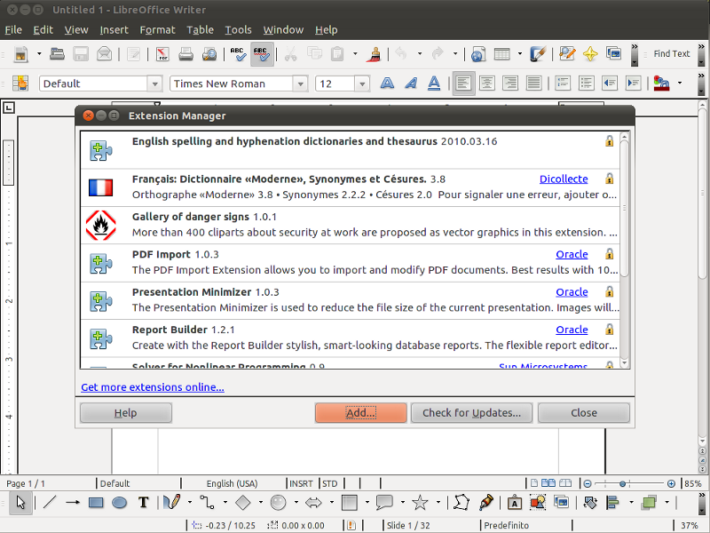 Impressum (Rechtliche Hinweise) | Datenschutzerklärung (Datenschutz-Bestimmungen) | Statutes (non-binding English translation) - Satzung (binding German version) | Copyright information: Unless otherwise specified, all text and images on this website are licensed under the Creative Commons Attribution-Share Alike 3.0 License. This does not include the source code of LibreOffice, which is licensed under the Mozilla Public License v2.0. “LibreOffice” and “The Document Foundation” are registered trademarks of their corresponding registered owners or are in actual use as trademarks in one or more countries. Their respective logos and icons are also subject to international copyright laws. Use thereof is explained in our trademark policy. LibreOffice was based on OpenOffice.org.