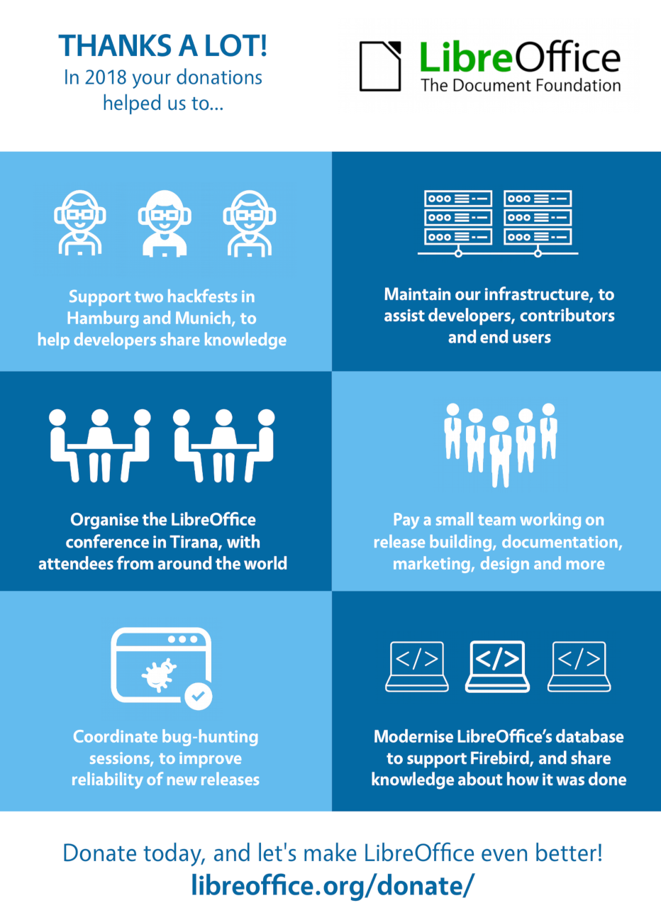 Impressum (Rechtliche Hinweise) | Datenschutzerklärung (Datenschutz-Bestimmungen) | Statutes (non-binding English translation) - Satzung (binding German version) | Copyright information: Unless otherwise specified, all text and images on this website are licensed under the Creative Commons Attribution-Share Alike 3.0 License. This does not include the source code of LibreOffice, which is licensed under the Mozilla Public License v2.0. “LibreOffice” and “The Document Foundation” are registered trademarks of their corresponding registered owners or are in actual use as trademarks in one or more countries. Their respective logos and icons are also subject to international copyright laws. Use thereof is explained in our trademark policy. LibreOffice was based on OpenOffice.org.